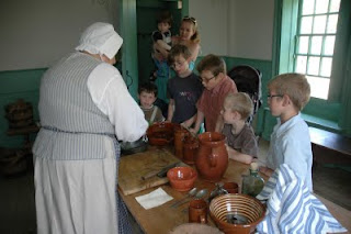 picking herbs from the garden, Ean is touching lambs ear...a really soft plant that I cannot remember what they used for